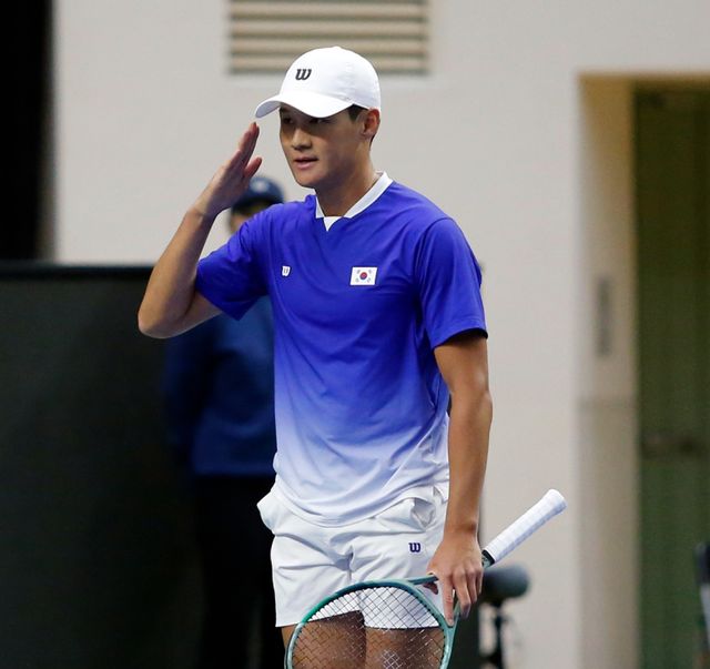 정종삼 감독이 이끄는 한국은 7일 부산 기장체육관에서 열린 2026 데이비스컵 테니스 대회 최종 본선 진출전(퀄리파이어) 1라운드(4단 1복식) 아르헨티나와 홈 경기 첫날 1, 2단식을 1승 1패로 마쳤다.