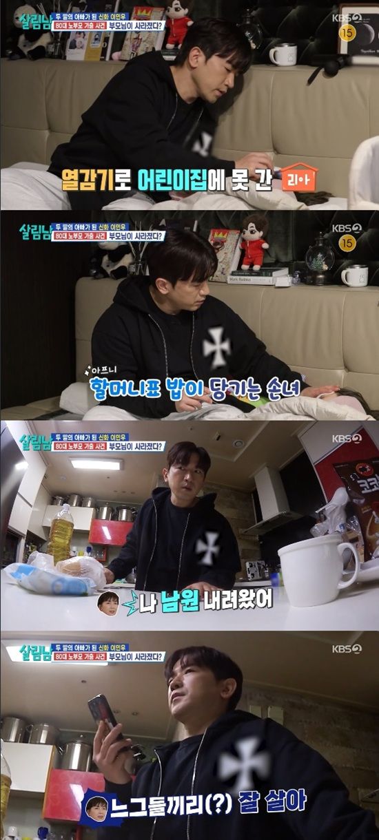 이날 이민우는 열감기로 어린이집 못 간 리아를 돌보면서 먹고 싶은 게 있는지 물어봤다. 리아는 할머니가 만든 밥이 먹고 싶다고 했다.