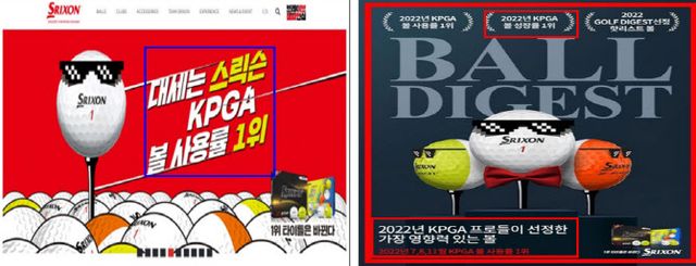또 3개월 동안의 사용률이 1위였다는 사실만으로 2022년 한 해 전체 사용률 1위라고 볼 수 없다는 점에서도 근거가 부족하다고 판단했다. 특히 공정위는 1부 투어 기준으로는 공식 인증된 통계업체 자료상 경쟁사 골프공이 사용률 1위였다고 밝혔다. 그럼에도 이를 명시하지 않은 채 ‘KPGA 볼 사용률 1위’로 광고한 것은 사실과 다를 소지가 크다고 봤다.