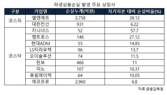 9일 금융감독원 전자공시에 따르면 연초 이후 파생상품 손실을 공시한 상장사는 유가증권시장(코스피) 2곳, 코스닥시장 9곳 등 총 11개사(코넥스·기타법인 제외)로 집계됐다.
