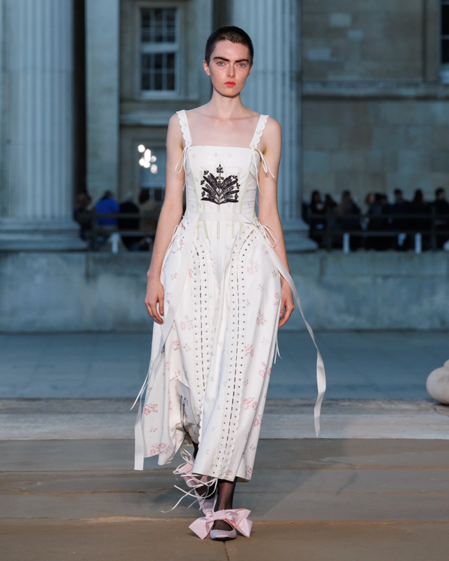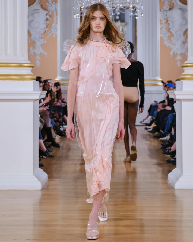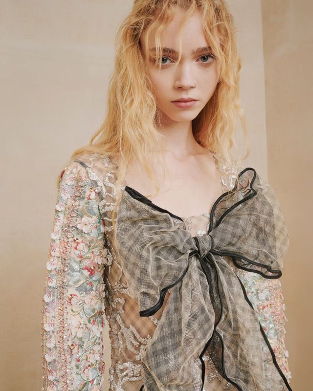 디자이너들은 리젠시 코어를 저마다의 화법으로 변주합니다. 2026 S/S 쇼를 살피면, 단순한 재현을 넘어 각 하우스의 미학과 결합해 새로운 인상으로 재구성한 흐름이 보입니다. 우선 디올(Dior)은 큼직한 보우 장식과 레이스 장식 그리고 파스텔 톤을 전면에 내세우며 조나단 앤더슨 특유의 미학으로 동시대적 감각을 덧입혔습니다. 특히 드레이프가 살아 있는 가운과 레이스 드레스가 컬렉션의 로맨틱 코드를 선명하게 보여줍니다. 에르뎀(Erdem)은 플로럴 패턴과 정교한 재단이 맞물려 장식적인 요소들이 가벼워 보이지 않도록 균형을 맞췄습니다. 리젠시 코어를 논할 때 리본의 대명사인 시몬 로샤(Simon Rocha)를 빼놓을 수 없습니다. 선이 곧은 드레스에 은은한 패턴을 가미하고 소매의 변주를 줬죠. 진주 장식이나 롱 글러브를 활용해 페미닌한 인상을 한층 또렷하게 각인시켰습니다.