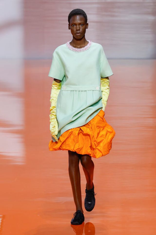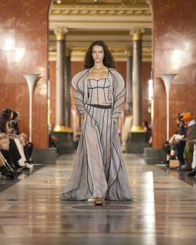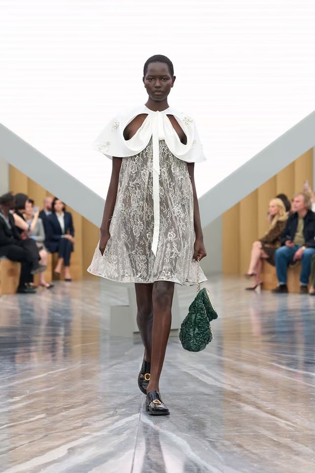 루이 비통(Louis Vuitton) 역시 이 대열에 합류했습니다. 퍼프 소매의 입체감과 스퀘어 네크라인을 강조한 룩을 선보이며, 이 흐름을 보다 고전적으로 풀어냈습니다.