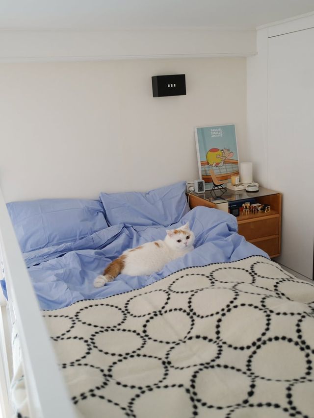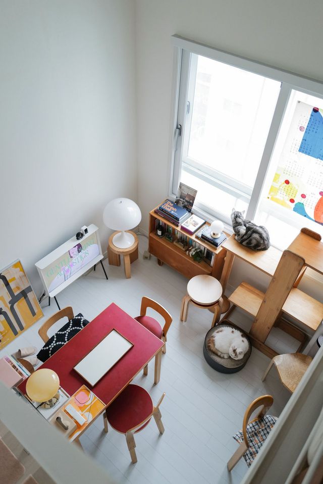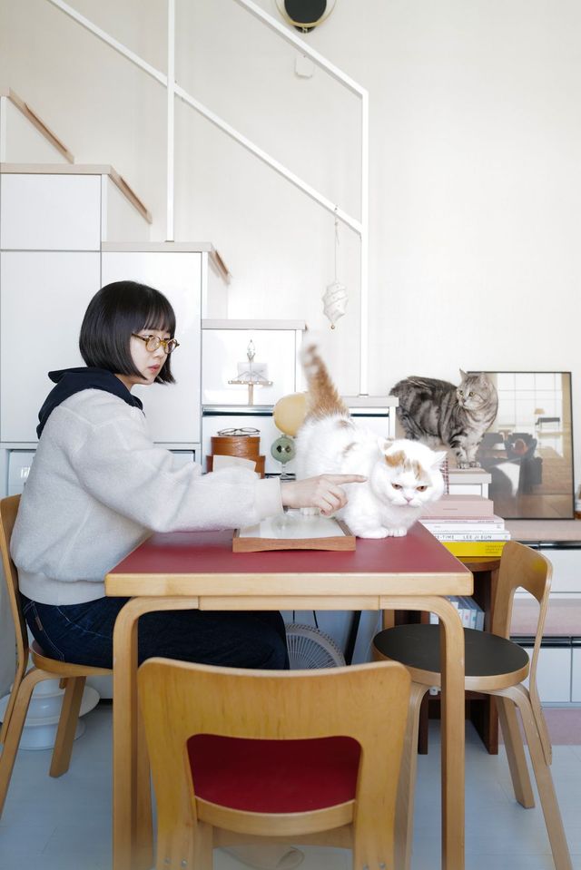 천장이 높은 공간은 고양이도 춤추게 할까요? 호두와 모카, 두 마리의 고양이와 공생하는 쏨타의 집은 층고가 높은 복층 원룸입니다. 본능적으로 수직 공간을 선호하는 고양이를 위한 선택이죠. 직사각 형태의 단순한 공간이지만, 쓸모 있고 아름다운 아이템으로 군더더기 없이 채웠습니다. 반려동물과 사는 이들의 집을 들여다보는 인터뷰 시리즈 #멍냥집, 네 번째 이야기.