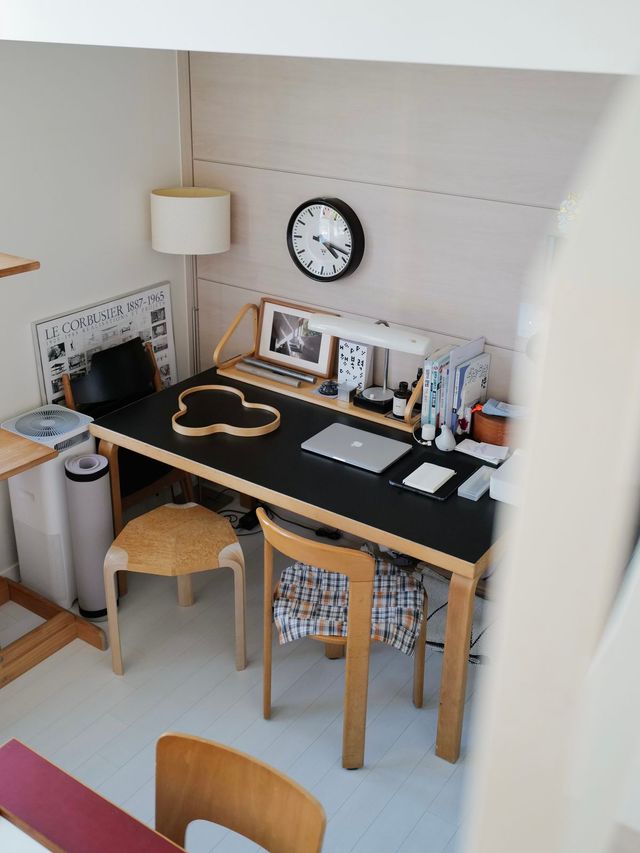 따뜻한 집이요. 목공예를 전공해서 목재를 다루며 가구를 만들었어요. 그래서인지 바닥재나 가구 등 집을 채우는 요소에는 목재가 하나쯤은 있어야 한다는 고집이 있습니다. 목재는 사람과 가깝고 따스한 소재 같아요. 그중에서도 밝은 색감의 자작나무 소재, 단순하고 투박한 디자인을 좋아합니다. 지금 저희 집에 직접 만든 가구는 없지만, 자작나무를 주요 소재로 하는 브랜드 아르텍(Artek)의 가구가 많습니다. 아르텍의 디자인이 마음에 들어요.