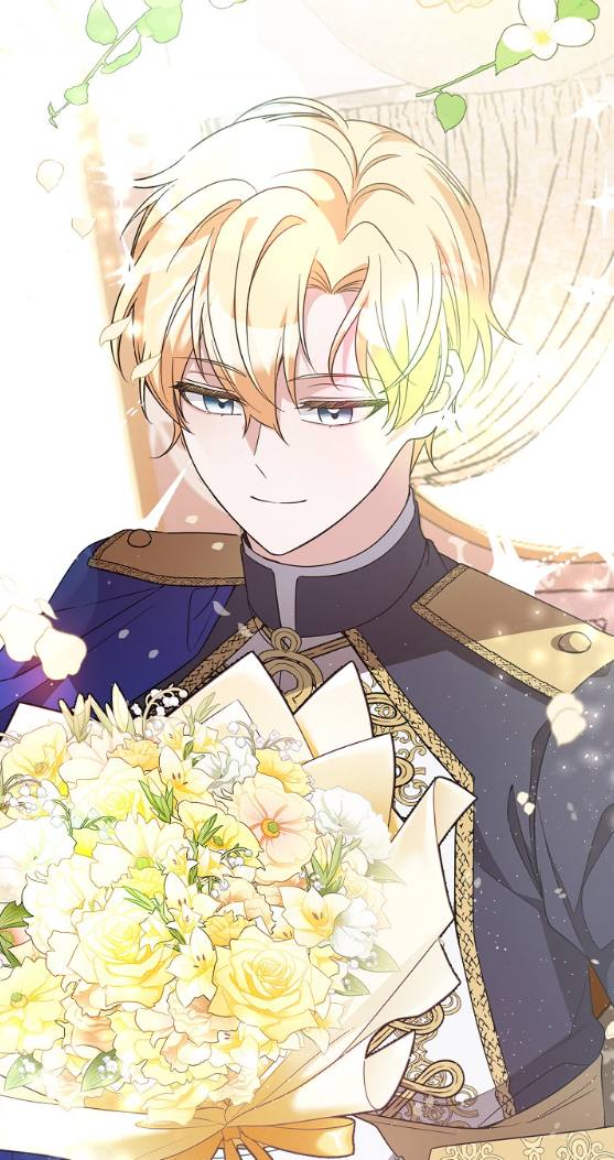 마차에서 한 어린 남자가 꽃을 든 채 내렸습니다.