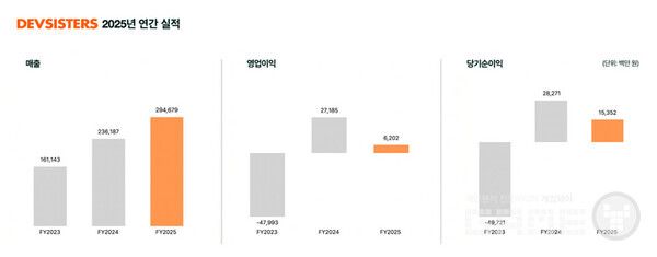 데브시스터즈가 2025년도 연간 잠정 실적을 발표했다.