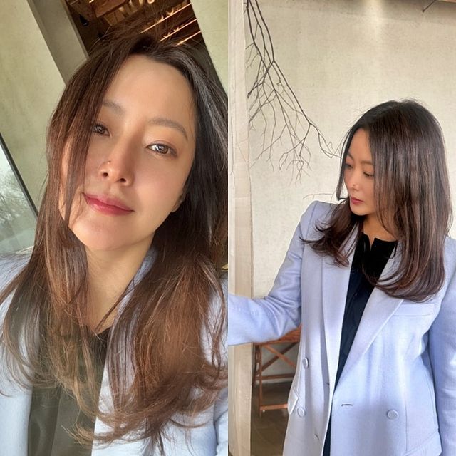 사진 속 김희선은 연보라 톤의 테일러드 재킷에 블랙 이너를 매치해 차분하면서도 세련된 스타일을 완성했다. 과하지 않은 컬러 조합과 간결한 실루엣이 김희선 특유의 우아한 분위기를 배가시킨다.