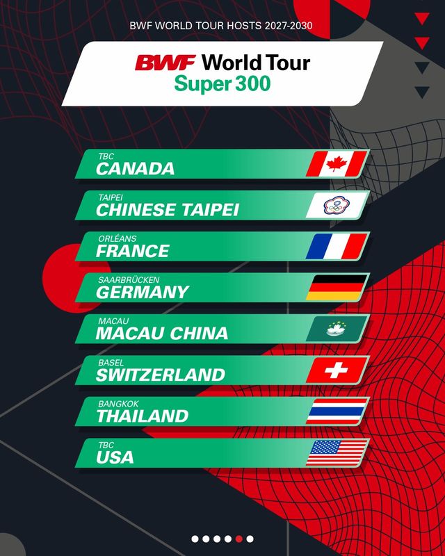 BWF는 9일(한국시간) 공식 채널을 통해 2027년부터 2030년까지 4년간 열릴 월드투어 시리즈의 개최국 명단을 확정해 발표했다.
