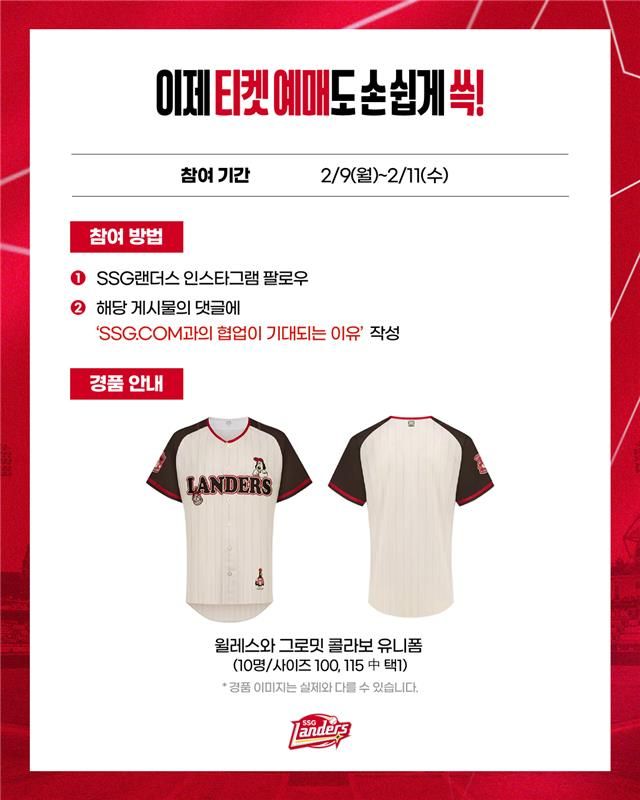 아울러 SSG는 이번 티켓 예매처 변경을 알리고 팬들과 소통하기 위해 공식 SNS 채널을 활용한 특별 이벤트를 진행한다. 오는 9일부터 11일까지 구단 공식 인스타그램 게시물에 협업 기대평을 댓글로 남기면 추첨을 통해 월레스와 그로밋 콜라보 유니폼(10명)이 증정된다.