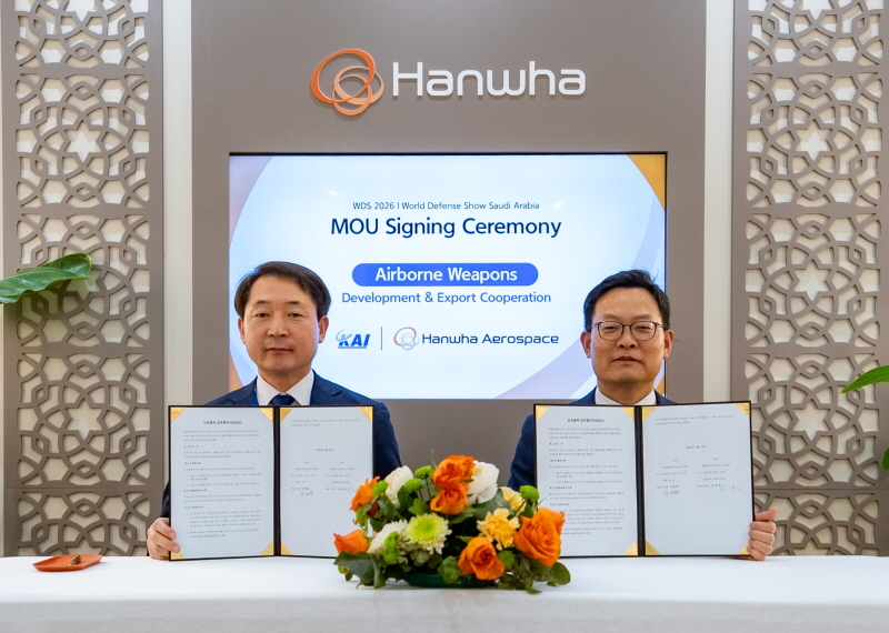 한화에어로스페이스와 KAI는 9일(현지시각) 사우디아라비아 리야드에서 열린 제3회 세계방산전시회(WDS)를 계기로 ‘항공무장 사업협력 업무협약(MOU)’을 체결했다고 10일 밝혔다.