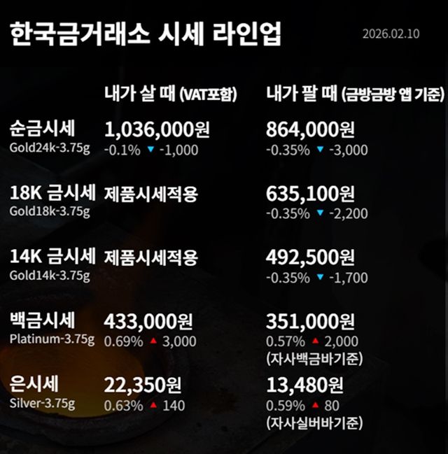 순금 : 매입가 103만 6000원 / 매도가 86만 4000원
