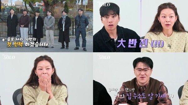 이어지는 첫 데이트 선택은 솔로녀들의 결정으로 진행됐다. 선택이 하나씩 공개될 때마다 현장에는 묘한 긴장감이 감돌았다. 데프콘, 이이경과 함께 지켜보던 MC 송해나는 한 솔로남의 결과를 확인한 뒤 상처받을 것 같다며 안타까움을 드러내, 과연 어떤 반전 결과가 기다리고 있는지 궁금증을 자아냈다.