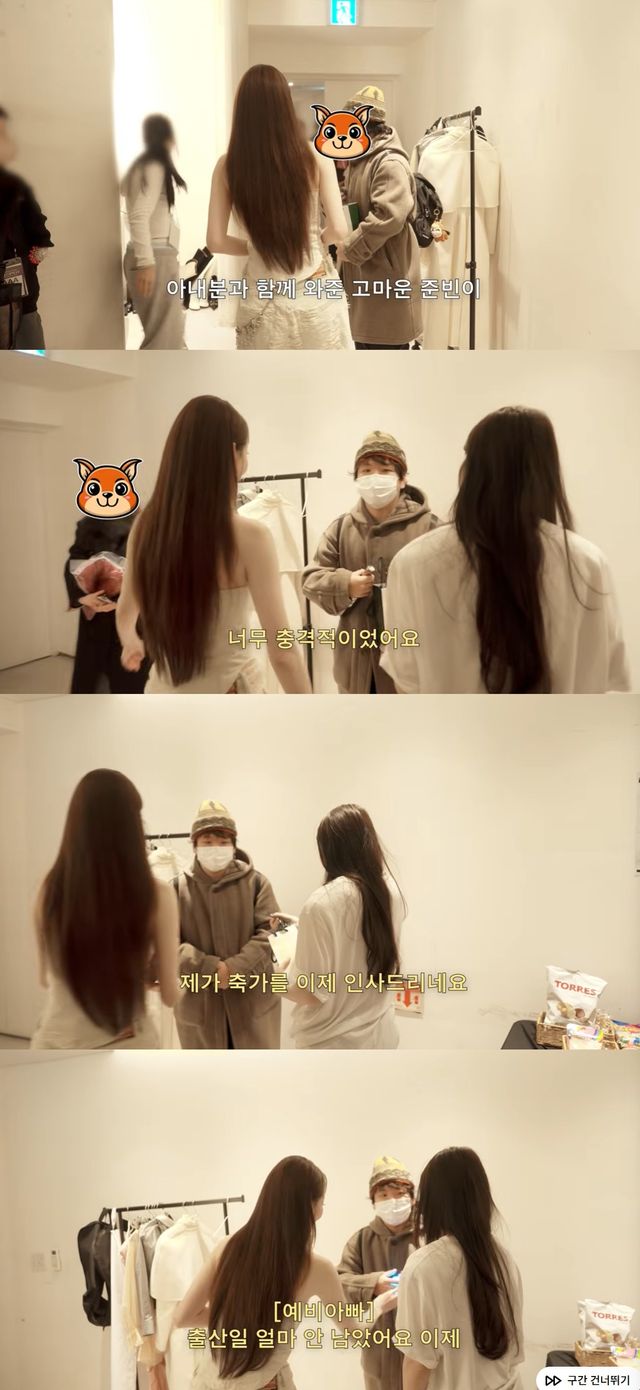 "귀염둥이처럼 하고 왔어"라며 대기실에 들어오던 곽튜브를 반기던 강민경은 함께 온 곽튜브의 아내를 보고 "어머 너무 애기같다"며 놀라움을 표했다.