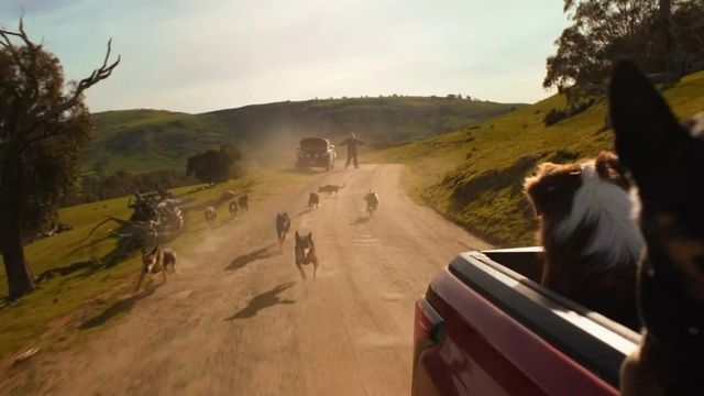 대부분의 개들은 주행 중인 픽업트럭의 적재함으로 뛰어올라 무리에 합류하며, 마지막 장면에서는 하이럭스 적재함에 시장의 농산물처럼 개들이 가득 쌓여 있는 과장된 연출까지 등장한다.