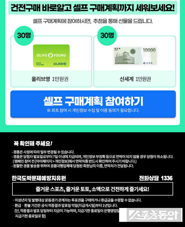 한국스포츠츠레저 관계자는 “이번 캠페인은 단순한 이벤트를 넘어, 이용자 스스로 건전구매를 실천할 수 있도록 마련됐다”며 “앞으로도 건전한 이용 문화 확산을 위해 다양한 건전화 캠페인을 지속적으로 운영할 계획”이라고 전했다.