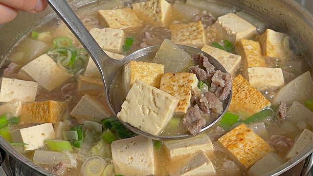 넣는 타이밍을 놓치면 공들인 두부가 오히려 단점이 된다. 구운 두부를 초반에 넣고 오래 끓이면 표면이 다시 풀리며 식감이 떨어진다. 무가 충분히 익고 간을 모두 맞춘 뒤, 마지막 단계에서 구운 두부와 썰어둔 다시마를 넣어 한소끔만 끓이는 것이 정석으로 알려져 있다. 이때는 끓인다기보다 온도를 올려 재료를 연결하는 느낌에 가깝다.