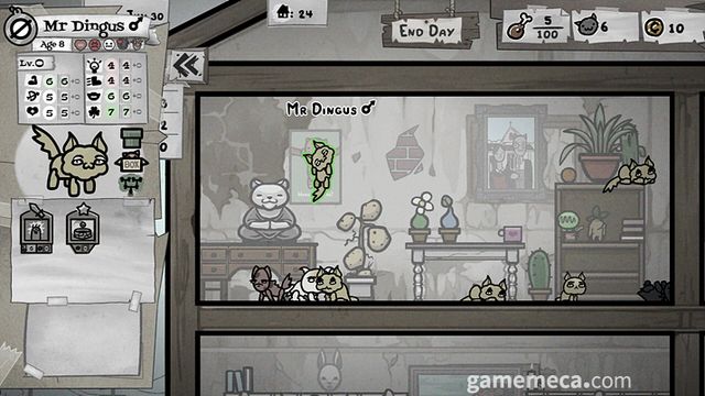 게임 플레이는 고양이 육성을 기반으로 한 전략 전투다. 교배를 통해 부모의 외형, 능력치, 성격, 질병 등을 물려받은 고양이를 육성해야 한다. 이렇게 길러낸 고양이들로 파티를 구성해 그리드 기반의 턴제 전투를 진행하며, 전투에서 얻은 자원으로 가구를 배치하거나 집을 확장한다. 고양이에게 10개 이상으로 나뉜 직업을 정할 수 있으며, 직업 특성에 맞는 능력 75개, 900개 이상의 아이템 등 다양한 조합으로 시너지를 낼 수 있다.