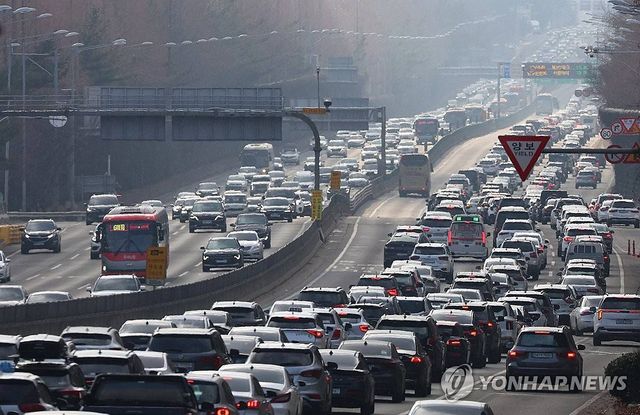 15일에도 귀경 차량이 늘면서 오전 7시부터 오후 4시까지 정체가 이어질 것으로 보인다. 서울∼부산은 6시간 2분, 서울∼광주는 5시간, 서울∼강릉과 서울∼대전은 3시간 19분으로, 평소보다 20∼30분가량 더 걸릴 것으로 예상됐다.