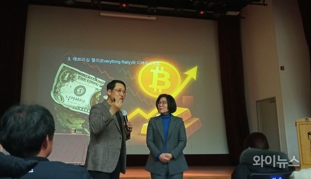 김 교수는 21세기 AI 시대에 요구되는 인재상과 시대 대응을 필두로 실물경제와 자본경제 사이에서의 물가 변동 추이, 유동성과 금리인하, 경제적 시각과 시기 파악, 국제 정세와 경제 흐름, 국제 관계에서 대한민국이 나아가야 할 AI 산업 방향 등을 소개했다.