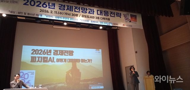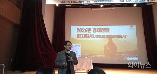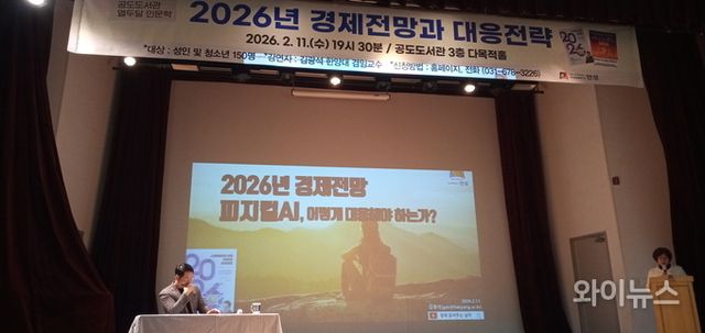 [와이뉴스] 김광석 한양대학교 겸임교수가 11일 오후 경기 안성 공도도서관 3층 대회의실에서 "2026년 경제전망 피지컬 AI, 어떻게 대응해야 하는가?"를 주제로 특강을 펼쳤다.