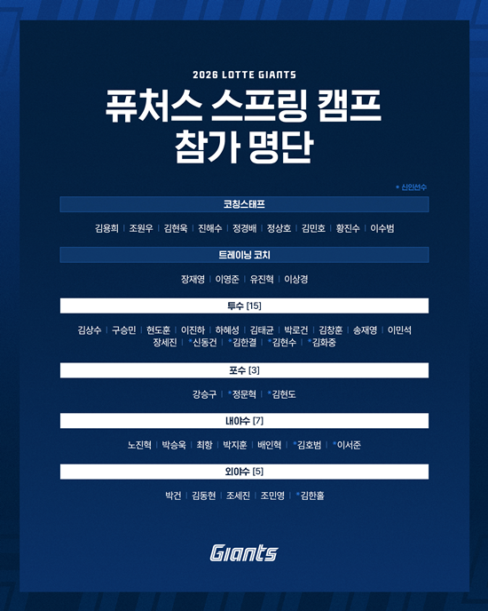 이번 퓨처스 스프링캠프 명단엔 1라운더 투수 신동건, 3라운더 내야수 이서준 등 2026 신인선수 9명과 투수 김상수와 구승민, 내야수 노진혁과 박승욱 등 베테랑들도 함께 이름을 올렸다. 그중 노진혁은 유일하게 지난해에 이어 2년 연속 퓨처스 스프링캠프에 동행한다. 냉혹하지만 현실적인 기대치가 그 정도다.
