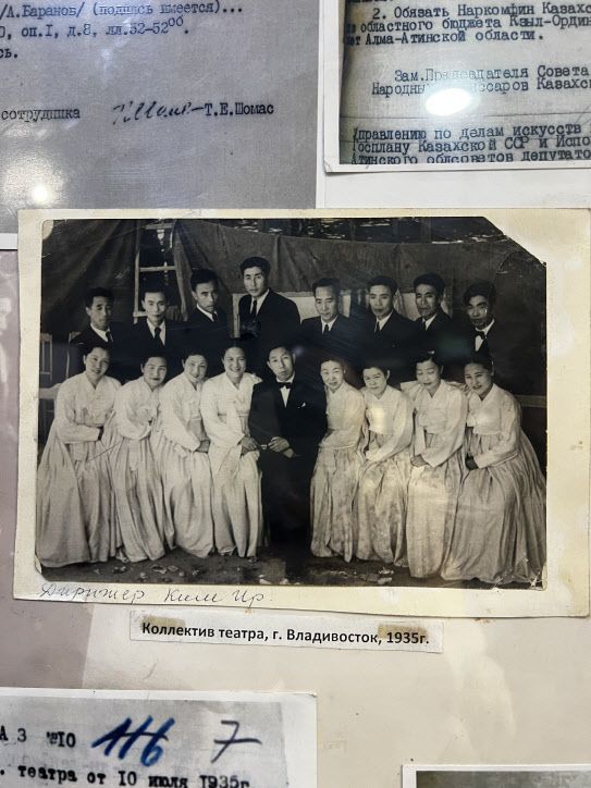 고려극장 1층의 작은 전시 공간에는 홍범도 장군의 유품과 함께 러시아에서 카자흐스탄으로 이어진 고려극장의 여정도 함께 기록되어 있었다. 당시 사용하던 물건들과 국립조선극장의 한글 대본, 러시아어로 극을 올리기 위한 행정서류 등이 전시되어 있었다. 낯선 땅에서 고국의 말과 글 그리고 우리의 문화로 버텨낸 그 시간의 흔적들은 한국인의 정체성으로 그 시대를 살아내는데 얼마나 큰 힘이었는지 고스란히 느껴졌다.