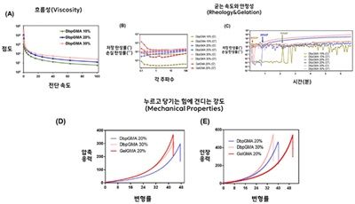 교수팀은 3D 프린터로 치아 구조를 구현하기에 가장 적합한 바이오잉크 조건을 찾기 위해 다양한 농도의 재료를 비교 실험했다.