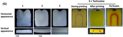 바이오잉크가 너무 묽은 경우(10%)에는 출력 직후 형태가 쉽게 흐트러져 구조를 유지하기 어려웠고, 반대로 너무 되직한 경우(30%)에는 프린팅 시 형태 안정성은 증가하나 정교함이 감소되며 세포 증식에도 좋지 않은 문제가 있다. 반면 중간 농도인 20%가 치아 구조체 제조에 적절한 프린팅성과 세포 적합성을 보였다.