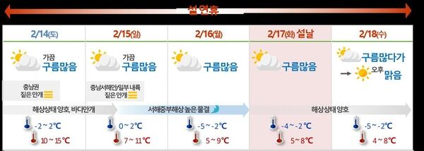 ▲ 충남권 설 연휴 날씨 요약. 대전지방기상청 제공