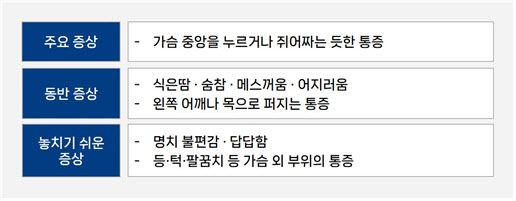 다만 모든 환자에게서 이처럼 전형적인 증상이 나타나는 것은 아니다. 일부 환자는 흉통 없이 명치 불편감이나 답답함, 소화불량 같은 느낌으로 증상이 시작될 수 있고, 등·턱·팔꿈치·왼팔 등 가슴 외 다른 부위에서만 통증이 느껴지기도 한다. 특히 당뇨병 환자, 고령자, 여성은 전형적인 흉통 대신 비전형적인 증상으로 시작되는 경우가 많아 작은 이상 신호도 가볍게 넘겨서는 안 된다.