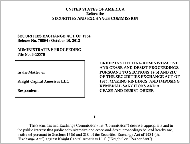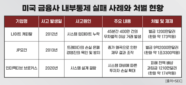 실제로 이미 미국에선 시스템 오류로 혼란을 야기한 기업들에 대해 강력한 처벌이 뒤따랐던 사례가 여럿 존재한다. 2012년 미국의 대형 증권사였던 나이트캐피탈그룹(Knight Capital Group)의 시스템 오류 사고가 대표적이다. 미국 증권거래위원회(SEC)에 따르면 나이트캐피탈그룹은 2012년 8월 뉴욕증권거래소(NYSE)의 새로운 거래 프로그램에 대응하기 위해 자사의 주문 시스템 'SMARS'의 업데이트를 단행했다. 그러나 관리자는 총 8대의 메인 서버 중 1대의 서버에 신규 코드를 반영하지 않는 치명적인 실수를 저질렀다.