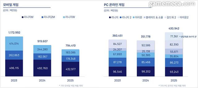 ▲ 엔씨소프트 게임별 매출, 모바일게임 매출이 계속 줄어들고 있다 (자료출처: 엔씨소프트 IR 페이지)