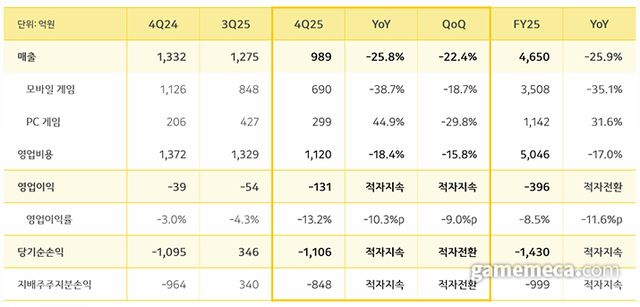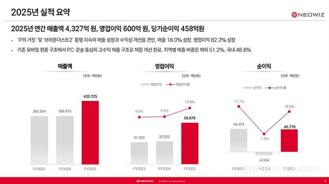 ▲ 네오위즈 2025년 실적 요약 (자료출처: 네오위즈 IR 페이지)