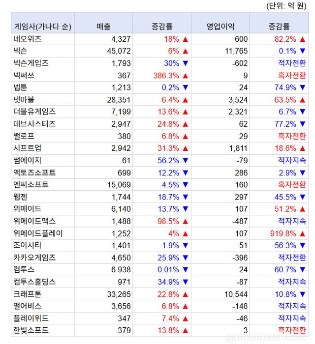 서브컬처 게임 다수가 연기되며 체질개선 효과를 보지 못한 웹젠도 영업이익이 45.5% 감소했고, 조이시티도 신작 출시에 따른 지급수수료와 마케팅비 증가로 전년보다 영업이익이 56.3% 줄었다. 신작 연기로 손익이 악화된 넵튠은 영업이익이 74.9% 줄었고, 기존작 매출 하락이 이어진 넥슨게임즈는 올해 신규 타이틀을 출시하지 못한 가운데 신작 개발비는 그대로 유지되며 602억 원의 영업손실을 냈다.