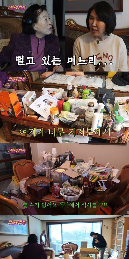 정리에 앞서 며느리는 제작진과의 인터뷰에서 어머니는 물건을 버리려고 내놓으면 다시 들고 들어가신다며, 워낙 알뜰하게 살아오신 터라 안 쓰고 안 버리는 습관이 몸에 배어 정리가 쉽지 않음을 토로했다. 처음에는 버리는 것이 싫다며 완강히 거부하던 전원주였으나, 식탁을 정리해 가족들이 모여 차를 마실 공간을 만들자는 설득에 결국 대대적인 청소를 허락했다.
