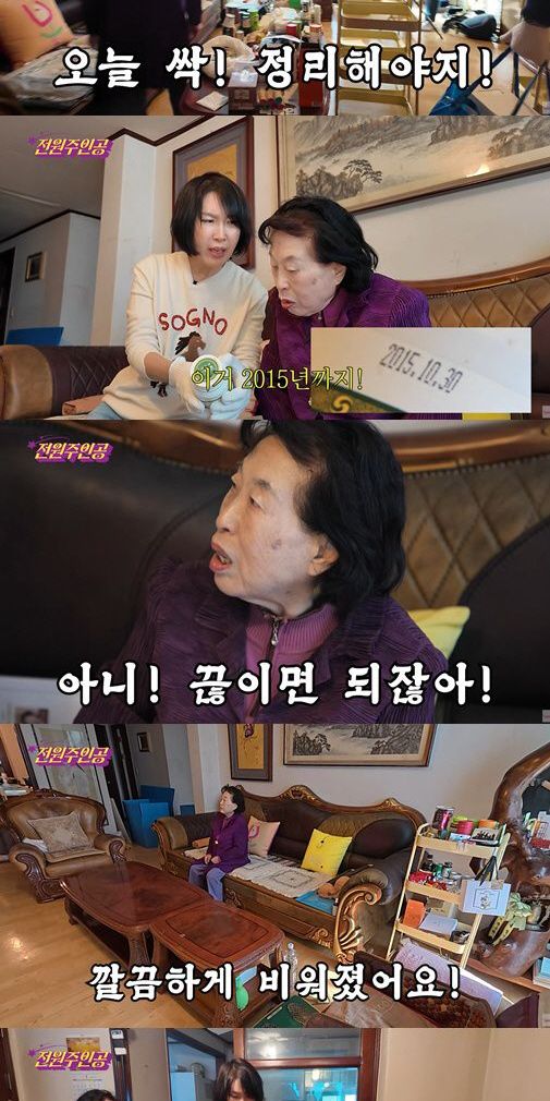 본격적인 정리 과정에서도 전원주의 못 말리는 절약 정신은 계속됐다. 유통기한이 2015년과 2016년에 멈춘 건강식품과 약들이 무더기로 발견되자 전원주는 아깝다거나 끓여 먹으면 된다며 미련을 보였다. 이에 며느리는 유통기한이 지나 드시면 큰일 난다며 건강을 위해 단호하게 폐기를 권유했고, 제작진 역시 버려야 새것이 들어온다며 거듭 설득에 나섰다.