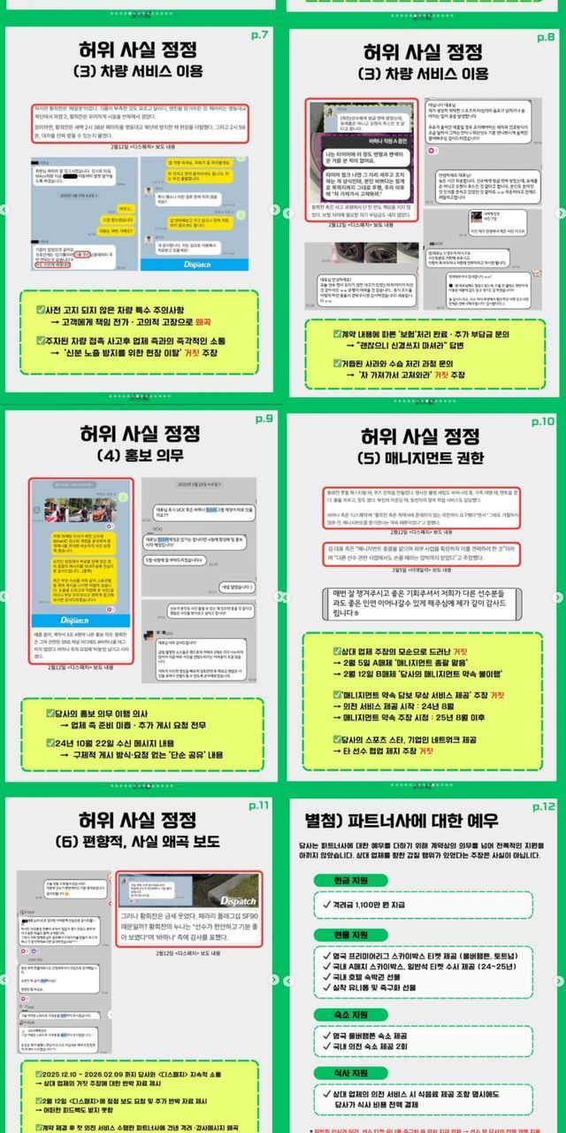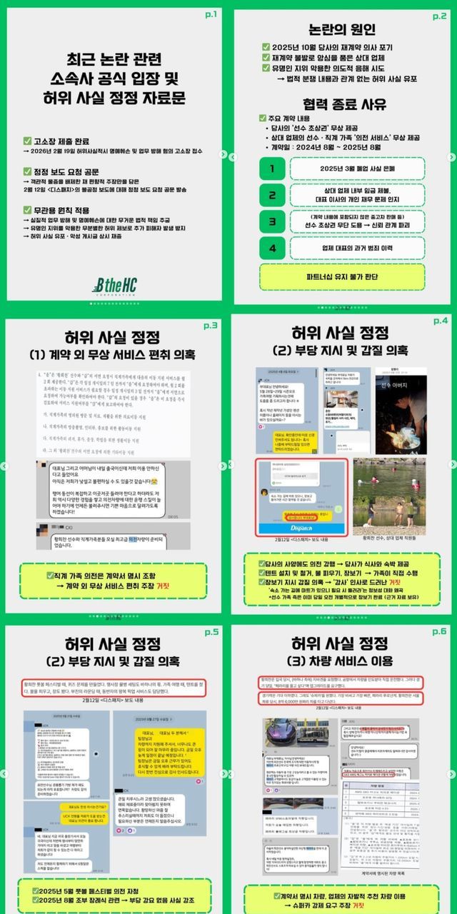 마지막으로 “계약상 홍보 의무를 다하기 위해 상대 업체와 긴밀히 소통해 왔다. 소통을 외면하거나 약속된 이행을 회피한 사실은 전혀 없다”며 “불필요한 논란으로 응원해주시는 분들께 상처를 드려 마음이 무겁다. 투명한 법적 대응을 통해 조속히 모든 의혹을 해소하겠다”고 덧붙였다.