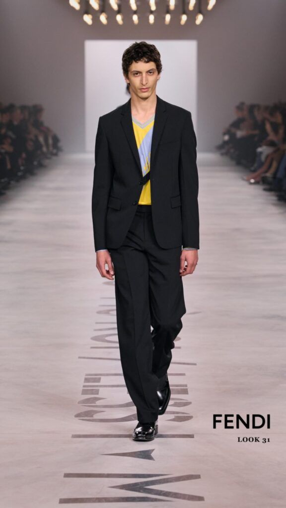 이번 컬렉션에서 눈에 띄는 또 하나의 변화는 로고 사용 방식입니다. 키우리는 더블 F 로고를 직접적으로 패턴화해서 드러내기보다 적절한 맥락 안에서만 활용했죠. 그래픽 디자이너 레오나르도 소놀리(Leonardo Sonnoli)와 협업해 폰트와 로고 체계를 정비한 점도 주목할 만합니다. 그는 로고를 장식이 아닌 ‘시그니처’로 정의하죠.