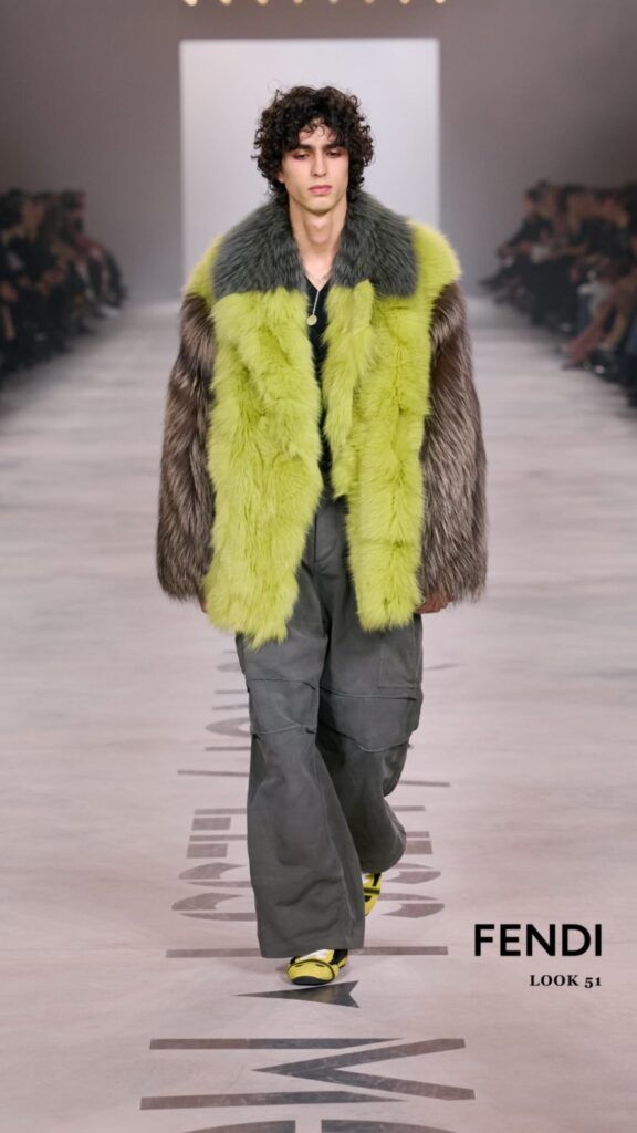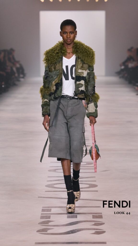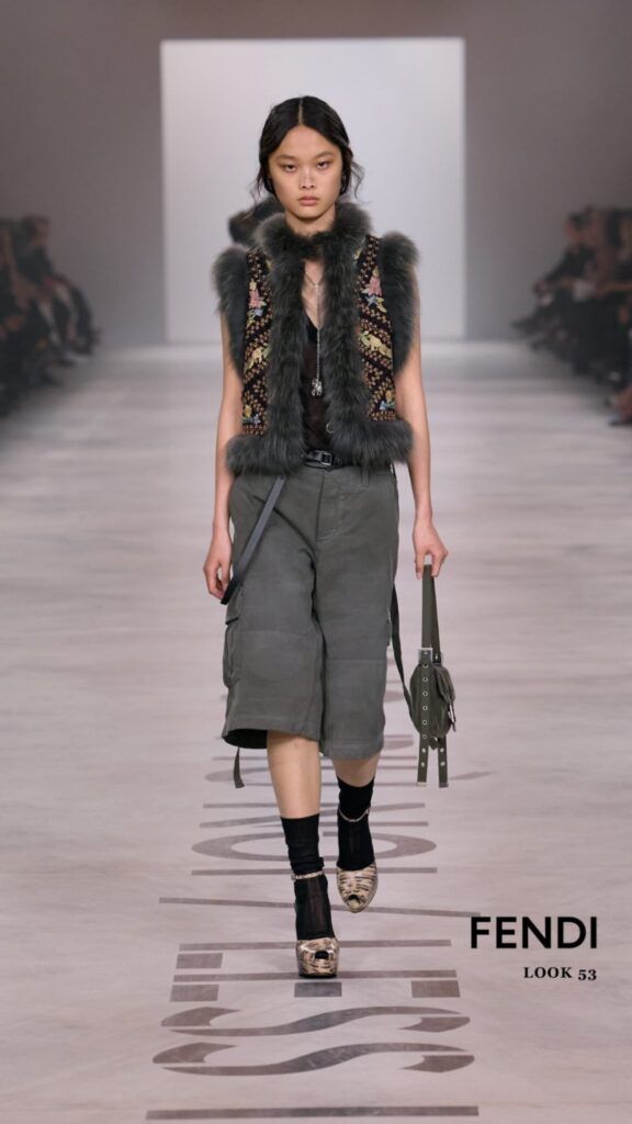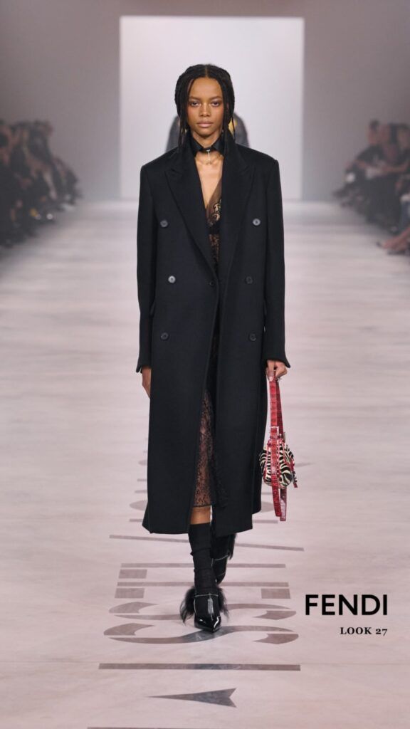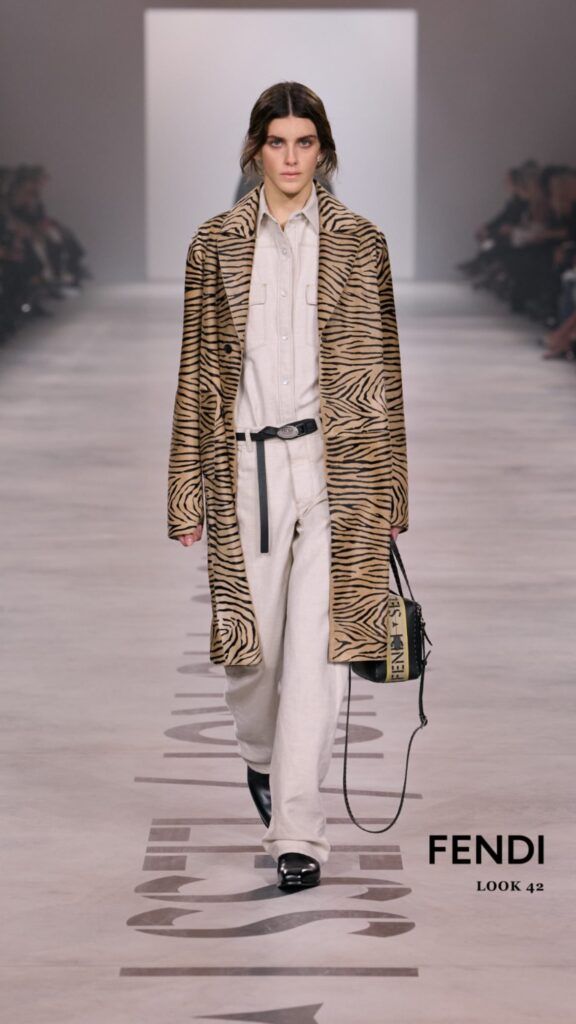 치우리는 로고의 과시 대신 퍼와 액세서리라는 하우스의 근간에 다시 초점을 맞췄는데요. 이번 시즌의 중심에는 다양한 방식으로 재해석된 퍼와 애니멀 프린팅 디테일이 돋보이는 액세서리가 자리했죠. 패치워크 기법을 적용한 퍼 코트와 자수가 더해진 베스트, 가죽과 모피를 교차한 텍스처는 하우스의 기술적 유산을 현대적인 시선으로 다시 풀어낸 결과였습니다.