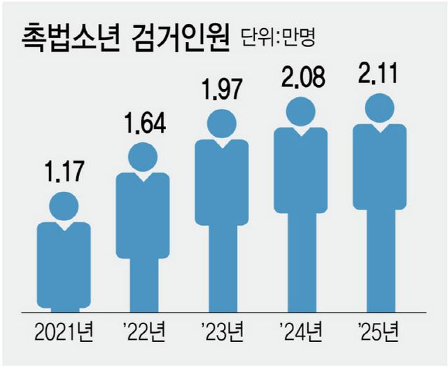 이같은 논의는 촉법소년이 저지른 범죄가 지속 증가하는 것과 무관치 않다. 경찰이 집계한 촉법소년 범죄발생현황에 따르면 2021년 1만 1677명에서 2025년 2만 1095명으로 5년새 약 2배 증가했다.