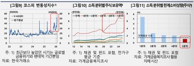 하지만 증시 변동성이 확대된 데다 주가 상승의 수혜가 고소득층에 집중된 점을 고려하면 실제 소비 파급효과는 이보다 낮을 가능성이 높다고 내다봤다. 고소득층의 금융자산 한계소비성향은 약 0.8%로 전체 평균을 소폭 밑돈다.