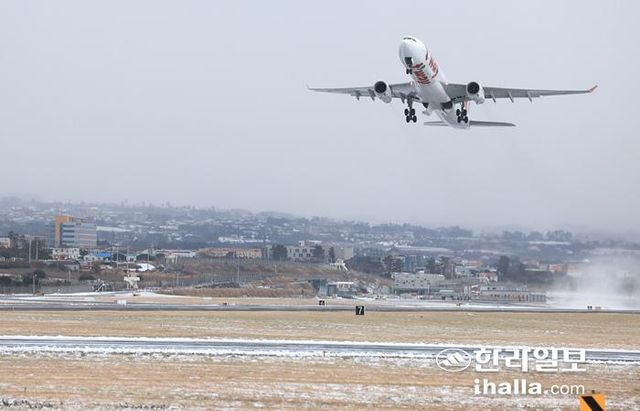 제주공항에서 이륙하는 항공기. 한라일보DB