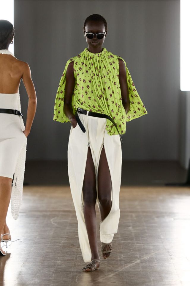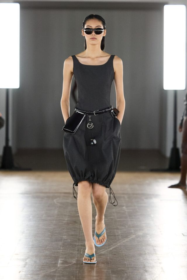 NOTE 패션과 테크놀로지의 결합을 지속해온 세바스티앙 메이어와 아르노 베일랑. 이 디자이너 듀오는 이번 시즌 ‘케어 웨어(Care Wear)’를 통해 웰빙과 기능성을 결합했다. 프리바이오틱스와 프로바이오틱스를 함유해 피부에 유익한 미생물을 전달하는 혁신적 원단의 보디수트, 베어풋 필라테스 슈즈, 두 손을 자유롭게 하는 다양한 벨트 백까지. 애슬레저의 영역을 한 단계 확장한 패셔너블한 아이템은 운동을 사랑하는 패션 피플의 눈이 번쩍 뜨이게 했다.