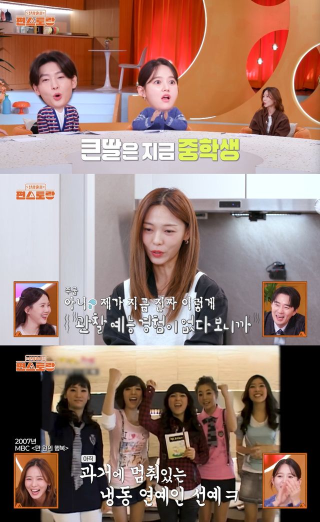 "벌써 딸 셋인데 애엄마처럼 안 보인다"는 말에 선예는 "큰 애가 지금 중학생, 막내는 초등학생이다. 중딩맘이다"라고 훌쩍 큰 딸의 근황을 밝혀 모두를 놀라게 했다.