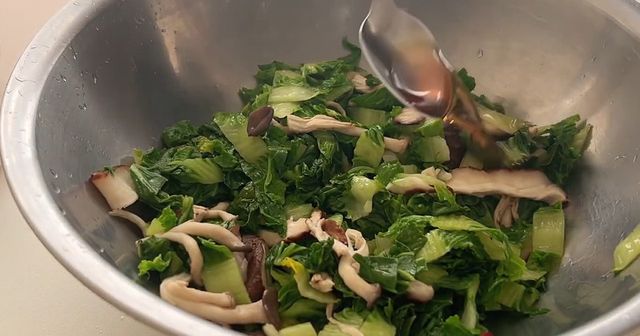 양념은 최대한 간결하게 한다. 국간장 1큰술에 다진 마늘 1작은술, 참기름 약간, 통깨를 더한다. 좀 더 상큼한 맛을 원하면 식초를 몇 방울 떨어뜨려도 좋다. 고춧가루를 소량 넣으면 붉은 기가 돌아 입맛을 돋운다. 데친 봄동과 볶은 버섯을 큰 볼에 담고 양념을 넣어 조심스럽게 버무린다. 이때 손으로 가볍게 털어 올리듯 섞어야 잎이 뭉개지지 않는다.