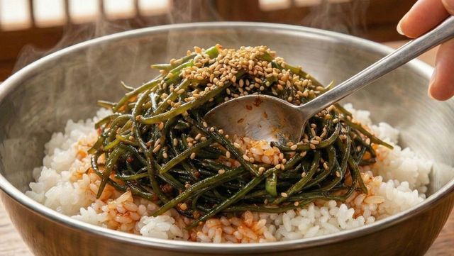 완성된 톳나물무침은 따뜻한 밥 위에 올려 비벼 먹으면 입맛을 살려주는 일등공신이다. 여기에 계란프라이 하나를 곁들여도 좋겠다. 오도독 씹히는 식감과 매콤달콤한 양념이 어우러져 입맛을 돋운다.