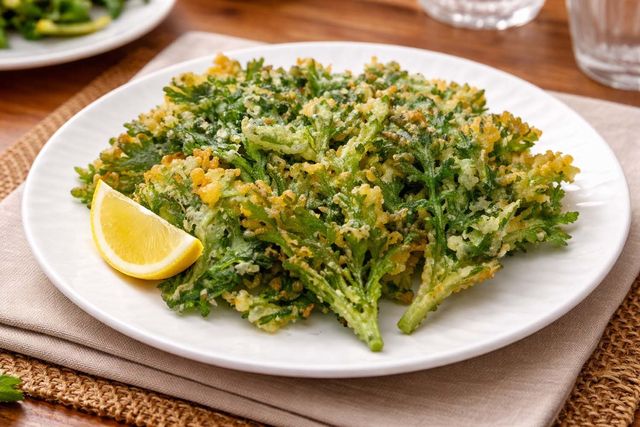쑥갓튀김. AI 툴로 만든 사진.