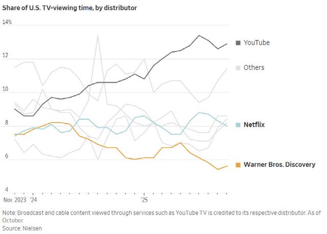 스트리밍 시장 판도 변화도 주목된다. 닐슨에 따르면 현재 미국 스트리밍 시장 점유율은 유튜브가 12.7%로 1위이며, 넷플릭스는 9%, 워너브라더스는 1.4%다. 합병 이후 파라마운트+와 HBO맥스가 결합한 새 플랫폼이 넷플릭스를 직접 겨냥한 경쟁력을 갖출 수 있을지가 관전 포인트다.