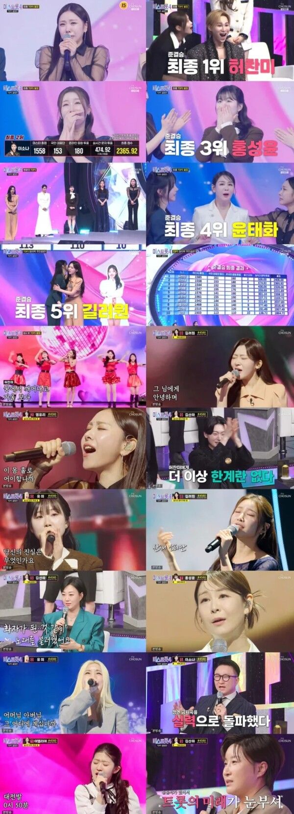 최고의 시청률과 화제성을 기록하며 대망의 피날레만을 남겨둔 미스트롯4 최종 결승전은 다음 주 목요일 오후 9시 30분에 방송될 예정이다. 과연 쟁쟁한 실력자 5인 중 누가 4대 진(眞)의 왕관을 차지할지 전 국민의 이목이 쏠리고 있다.