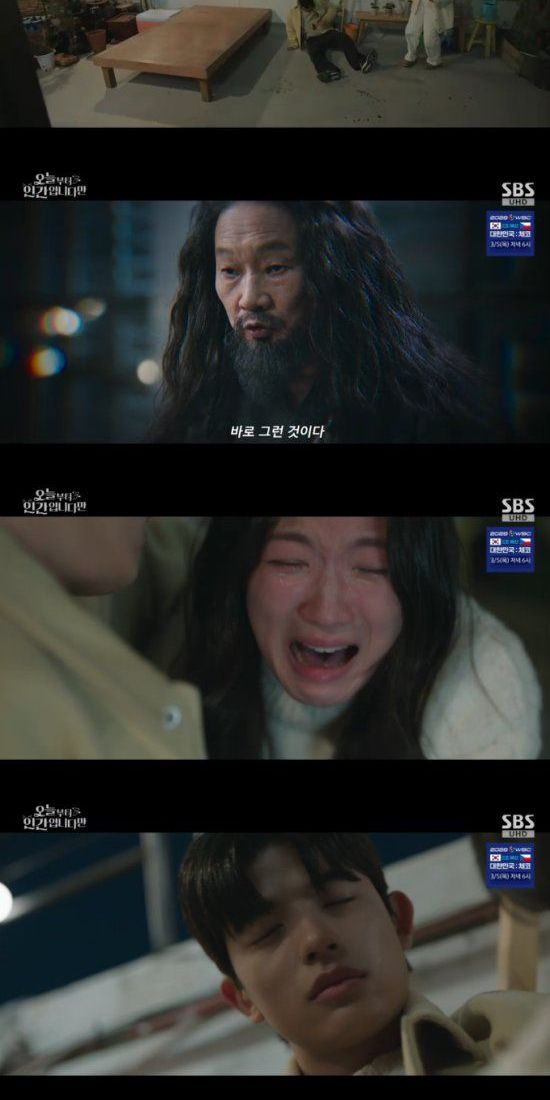 지난 27일 방송된 SBS 금토드라마 '오늘부터 인간입니다만' 11회에서는 은호(김혜윤 분)를 대신해 이윤(최승윤)이 쏜 총에 맞고 쓰러진 강시열(로몬)의 모습이 그려졌다.